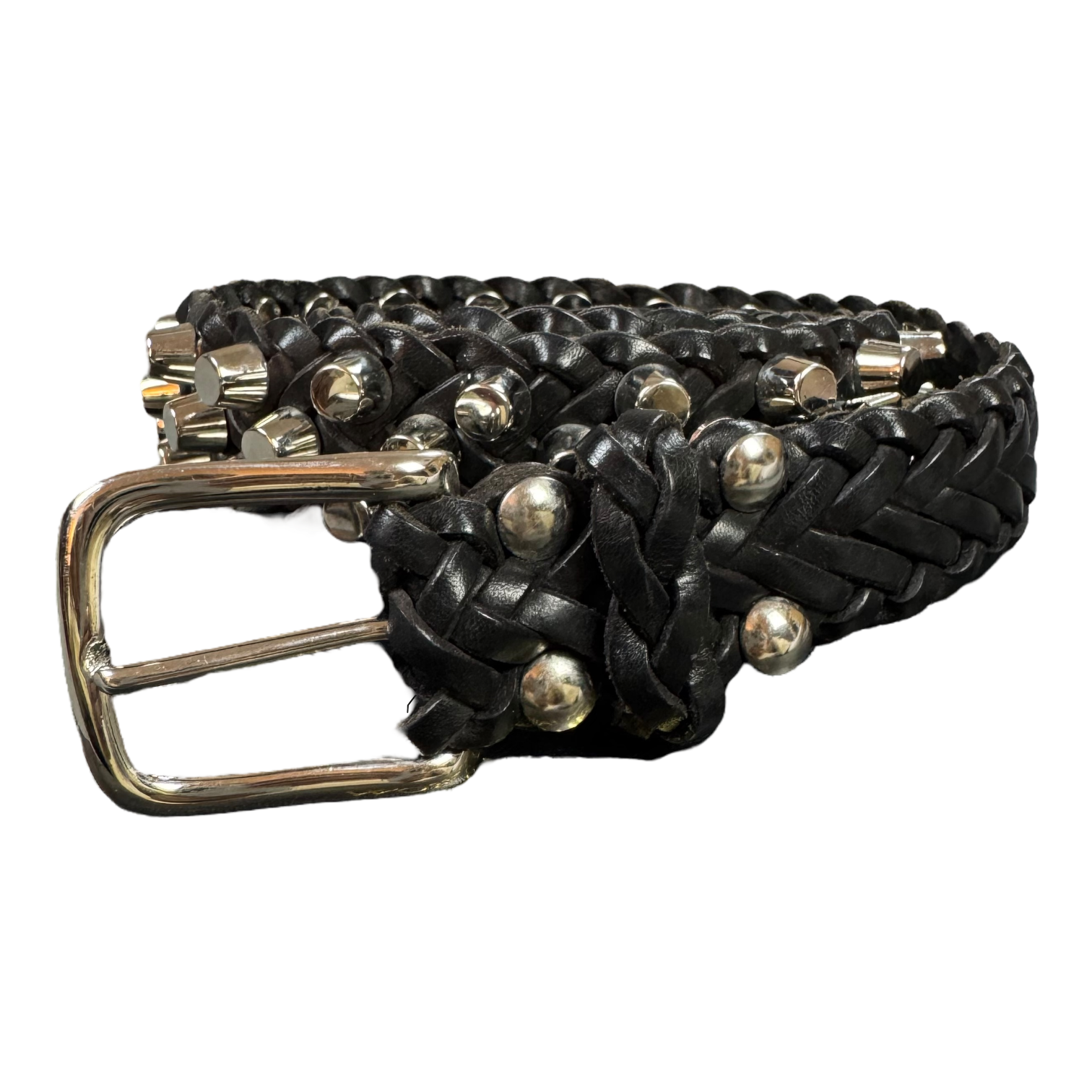 Balmain by Christoper Decarnin Studded Leather belt. Magnificent woven Leather belt embellished with metal studs by Balmain. One Size fits all.