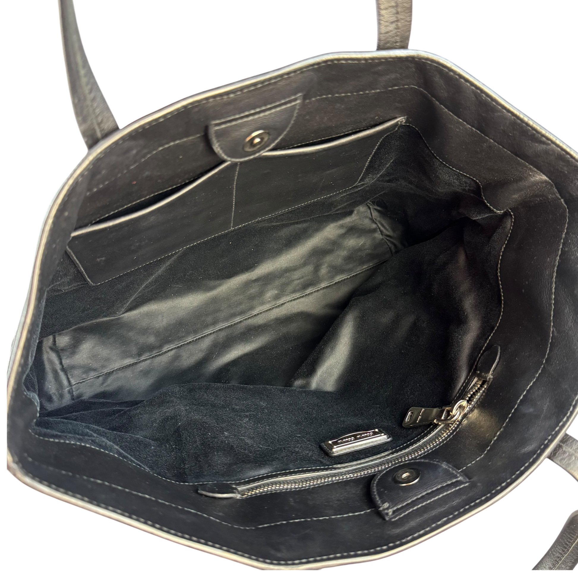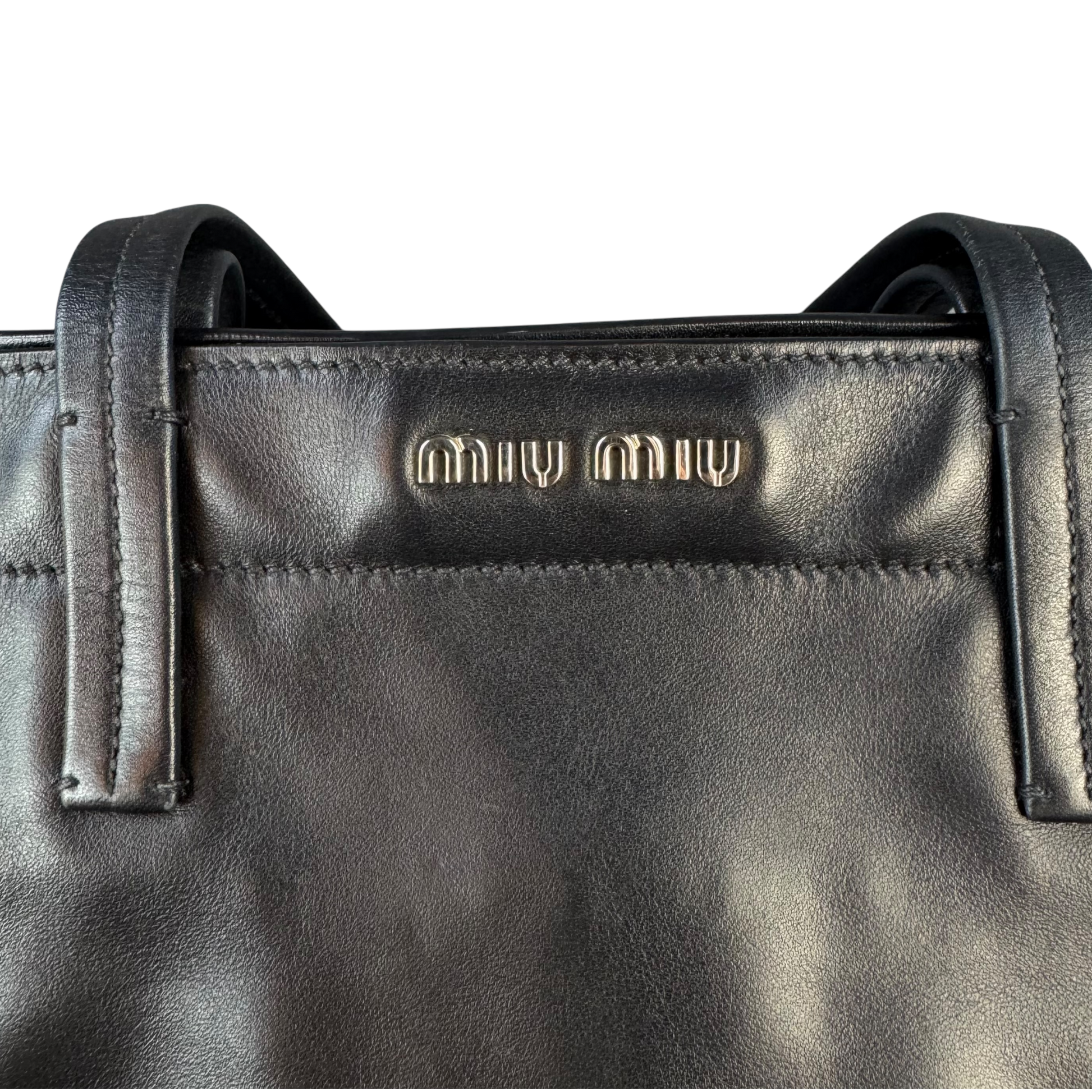 Miu Miu Handbag in a black Leather fabric. Stunning Handba featuring a Zipped compartment to the front, an overall spacious inside with compartments and a Silver Miu Miu embelishment to the front.